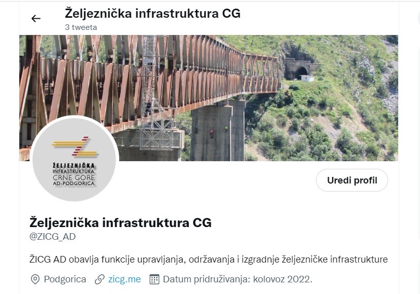 Željeznička infrastrukture Crne Gore AD – Podgorica (ŽICG) je 3.