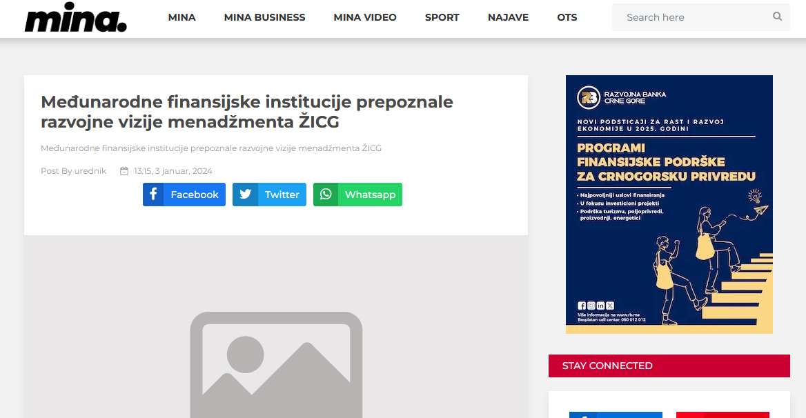 Izvršna direktorica ŽICG Marina Bošković: Međunarodne finansijske institucije prepoznale razvojne vizije menadžmenta kompanije