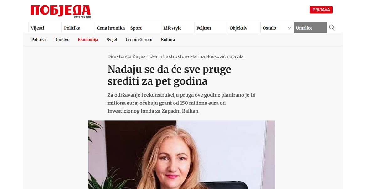 Izvršna direktorica ŽICG Marina Bošković: Predstoje značajna ulaganja u željezničku infrastrukturu