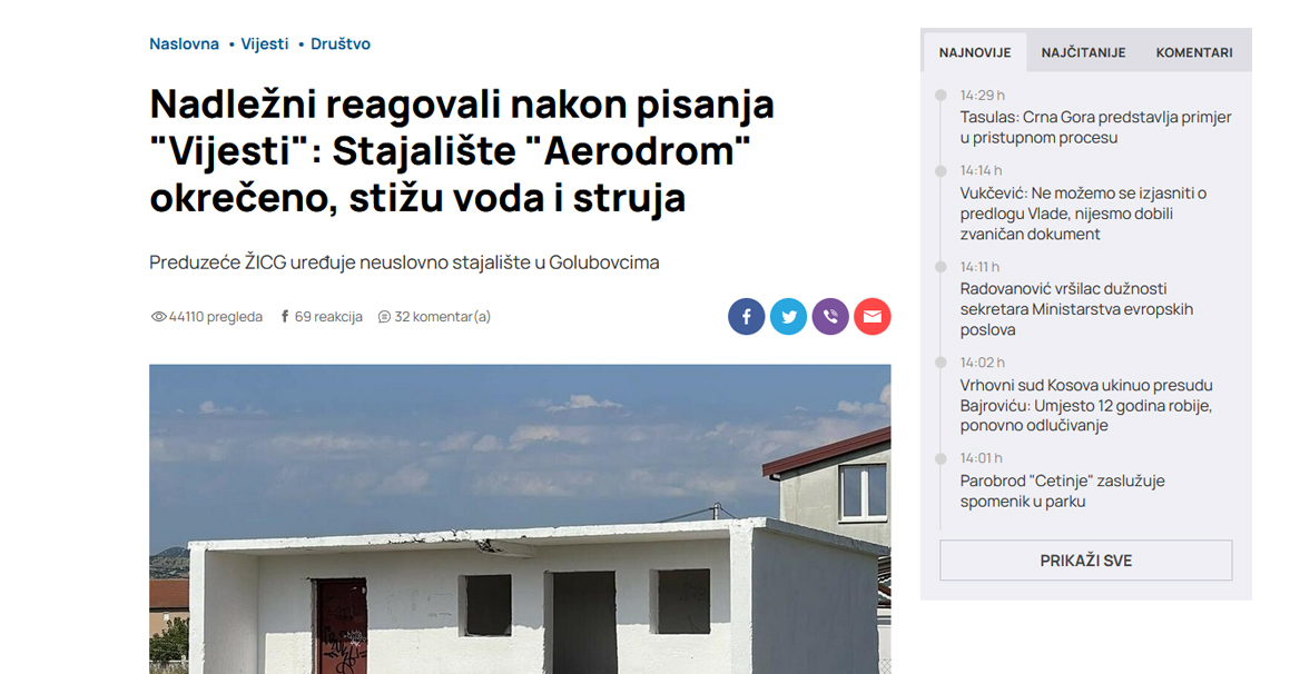 ŽICG uređuje neuslovno stajalište u Golubovcima
