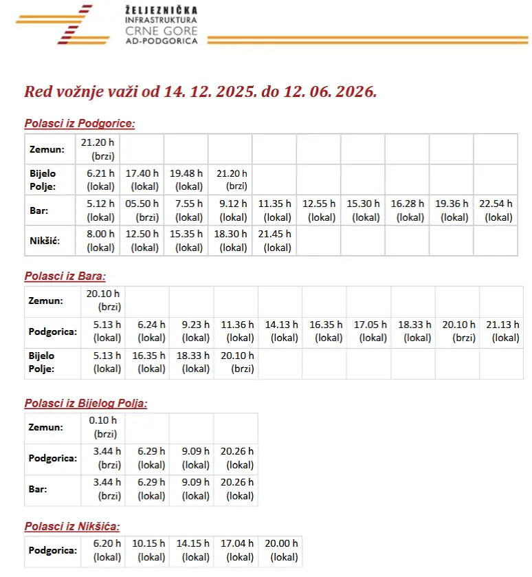 Novi željeznički red vožnje važi od 11. decembra ove godine.